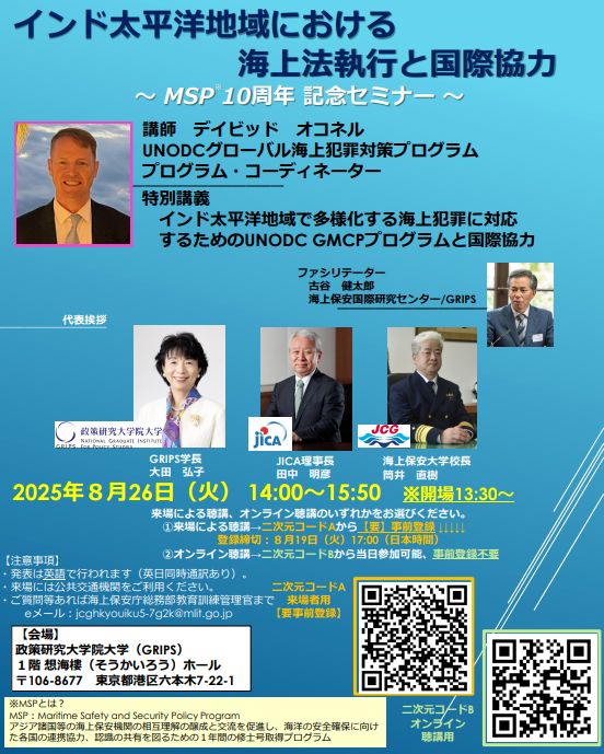 海上保安政策プログラム10周年記念セミナー『インド太平洋における海上法執行と国際協力』を実施!