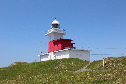 に調和して建っています。途中エゾシカに遭遇することもあります。灯台の周囲は断崖となっていて危険ですので注意ください。