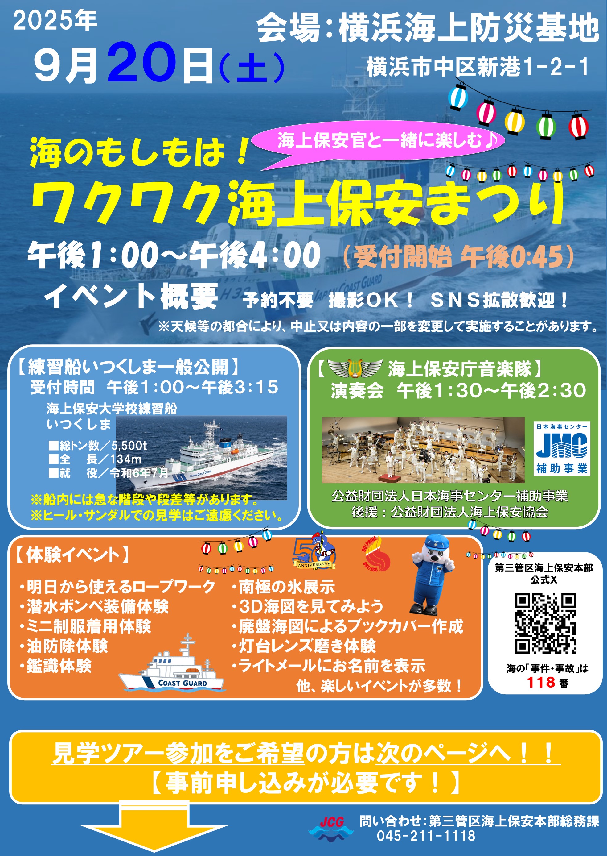 練習船「いつくしま」一般公開や、海上保安庁音楽隊による演奏会、
