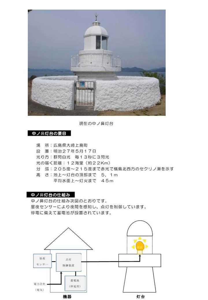 中ノ鼻灯台は、広島県豊田郡大崎上島町の南東端に所在する灯台。