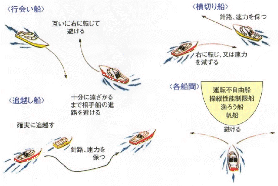 | ● | 海上衝突予防法、海上交通安全法、港則法などの海上交通ルールを守る。 |