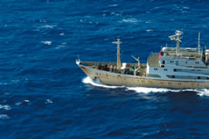 | ▲沖ノ鳥島周辺をしょう戒する 巡視船「せっつ」 |