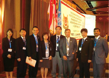 平成19年10月には、シンガポールにおいて、ISCが初めて主催する人材育成事業である、「キャパシティービルディングワークショップ」が開催され、締約国等16か国から34名が参加しました。松本官はISCの中心的立場として同ワークショップの企画立案・運営に携わり、事業を成功に導きました。また、ISC発足から現在まで、バングラディシュ、ブルネイ、タイ等へ出張し、各国の海賊対策の現状についての調査を実施しています。