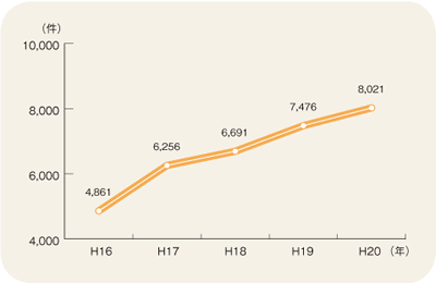 平成20年の海上犯罪の送致件数は8,021件で前年より545件増加しました。その内訳をみると、海事関係法令違反3,969件(全体の49.5%、前年より504件増加、以 下同じ)、刑法犯1,171件(14.6%、38件増加)、海上環境関係法令違反639件(8.0%、13件減少)、漁業関係法令違反1,932件(24.0%、99件増加)となっています。