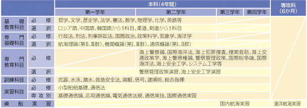 海上保安大学校は、広島県呉市にあり、将来の幹部職員として必要となる高い教養と見識、強靭な気力・体力、優れた人格を持ち、リーダーシップを発揮できる人材を育成する教育機関です。カリキュラムは文部科学省の大学設置基準に準じており、卒業時には日本で唯一の「学士(海上保安)」の学位が授与されます。教育期間は本科4年と専攻科6か月の計4年6か月です。