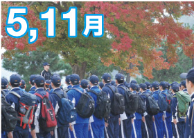 学生は全員、学生寮で生活を行います。寮では、同じ自習室・寝室で生活する「班」と、4〜5班で編成する「分隊」という単位で行動し、規則正しい生活を通じて、団体行動を行う上で必要なチームワークや同期との信頼関係を築いていきます。