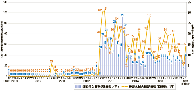 尖閣諸島周辺海域における主な情勢