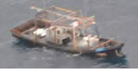| 漂流中の木造船(石川県輪島市沖約5海里の海上) |