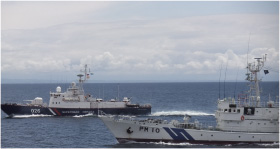 | ロシア国境警備艇(奥)と巡視船「そらち」 |
