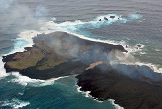 海上保安庁では、この爆発的噴火を受け、本庁及び第十管区海上保安本部に対策本部を設置し、周辺海域を航行中であった測量船「拓洋」をはじめ、巡視船、航空機、機動救難士等を出動させ、島民の避難支援、医師及び救援物資の輸送等を行いました。