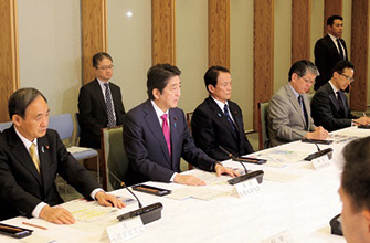 | 関係閣僚会議で発言する安倍内閣総理大臣 |