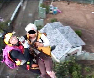 離島や土砂災害で孤立した集落に警察、消防、自衛隊等の関係者を巡視艇で搬送したほか、愛媛県宇和島市では76歳の透析患者をヘリコプターで吊り上げ、市内病院のへリポートに搬送しました(20回244名)。