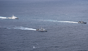 海上保安庁では、巡視船・航空機により不審な船舶に対する警戒監視を行うとともに、各種訓練を通じ、発見時における適切な対処能力の向上に努めています。