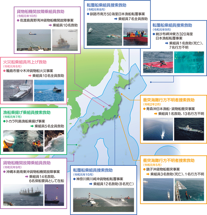 我が国の周辺海域において、衝突や転覆、乗揚げ、火災等、様々な海難が発生しています。