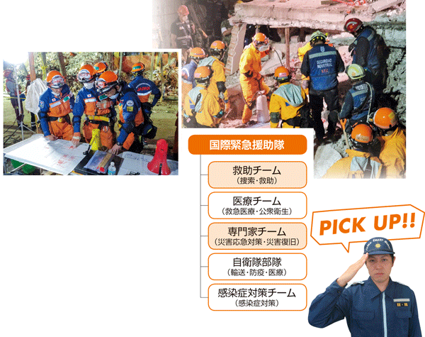 救助チームとは、被災地における被災者の捜索、発見、救出、応急処置、安全な場所への移送を行うチームで、専門家チームとは、災害に対する応急対策と復旧活動について被災国政府へ助言を行うチームであり、これまで海上保安庁からは、救助チームに延べ航空機1機・176名、専門家チームに延べ23名が派遣されています。