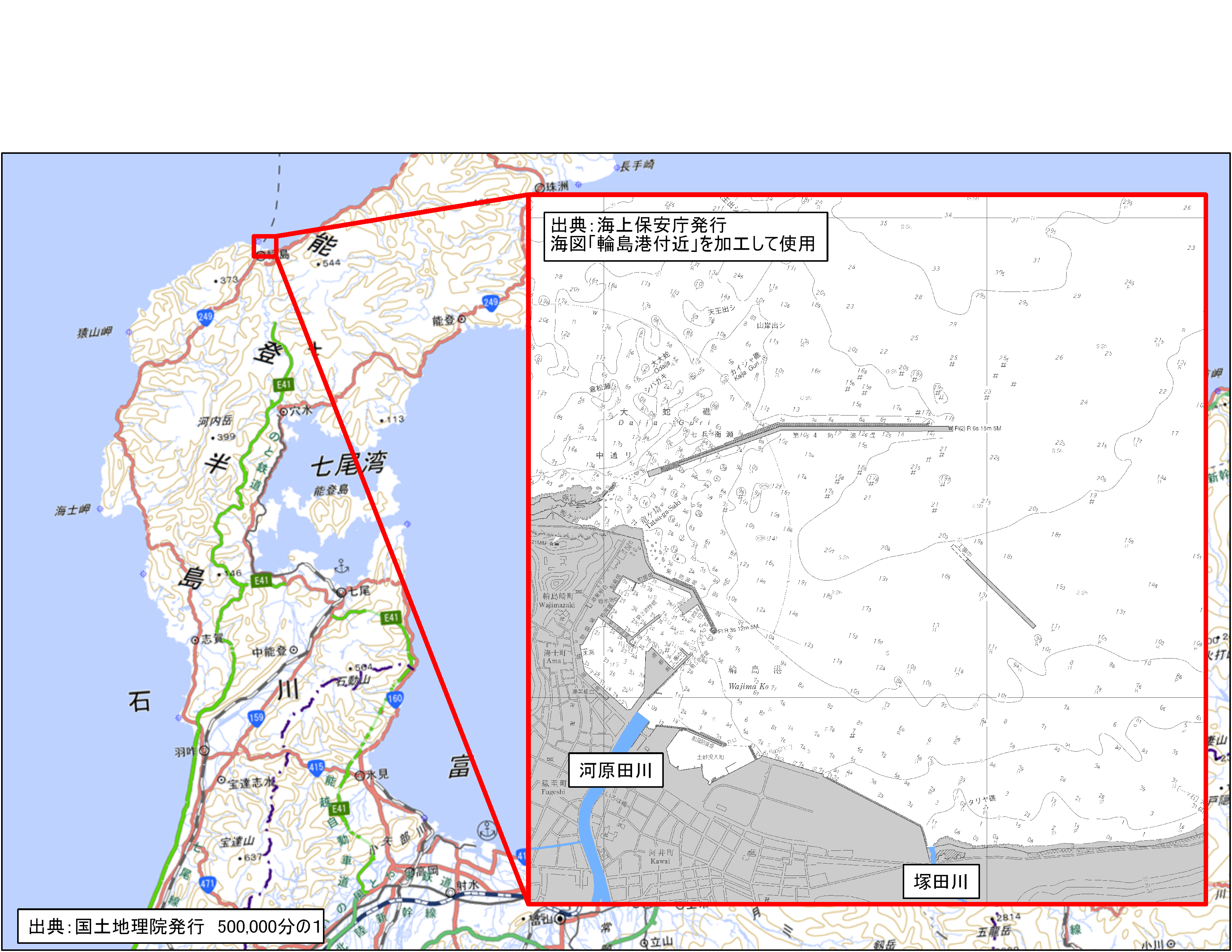 石川県輪島市の輪島港では、豪雨により、大量の土砂が河川を通じて流れ込み、海底に堆積しました。この土砂の堆積により、輪島港内の水深が大幅に浅くなったことから、船舶の航行安全を確保するために、堆積した土砂を取り除くなど輪島港の復旧に向けた取り組みが行われてきました(参考1)。